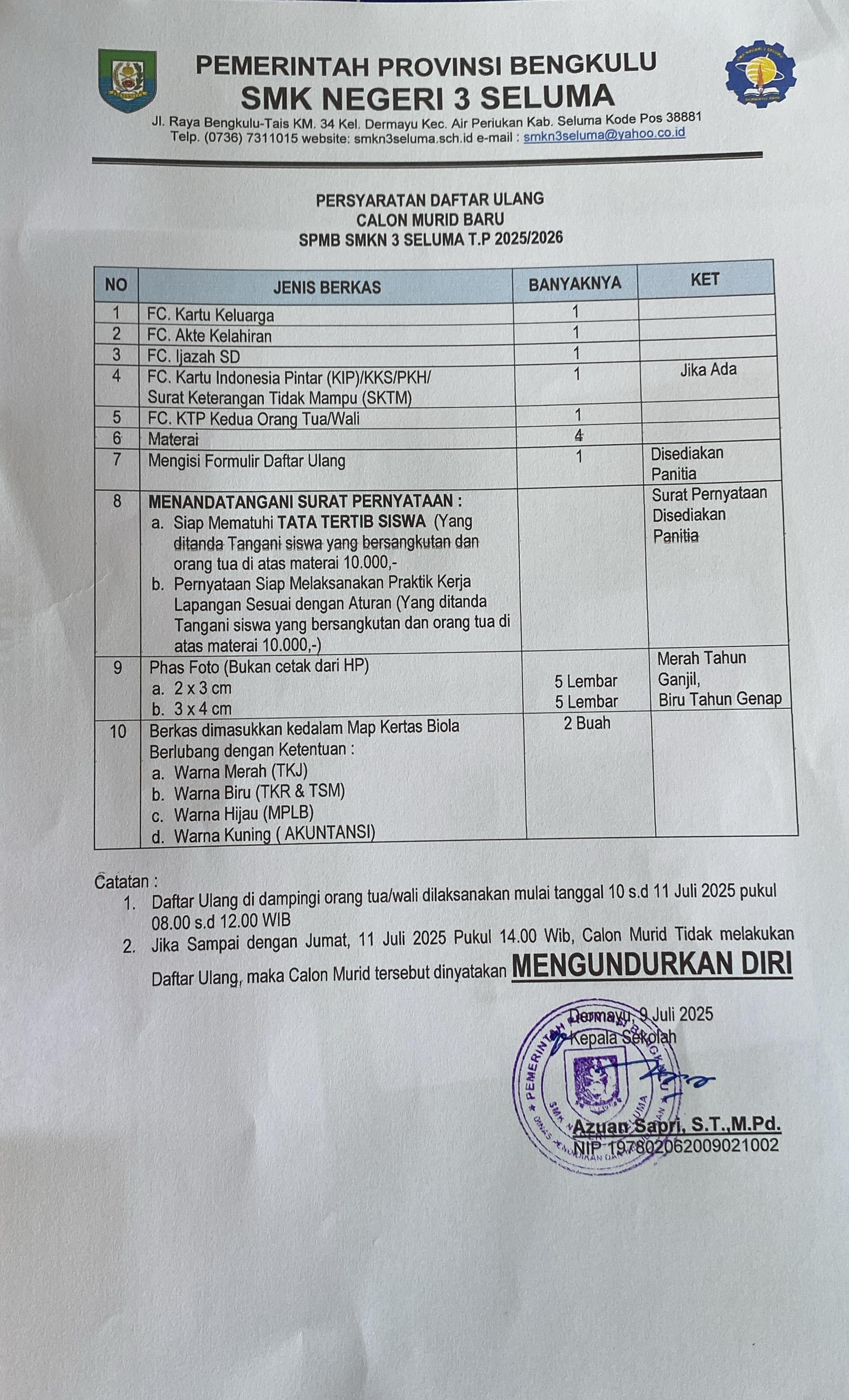 PENGUMUMAN SEMENTARA SPMB SMKN 3 SELUMA 2025